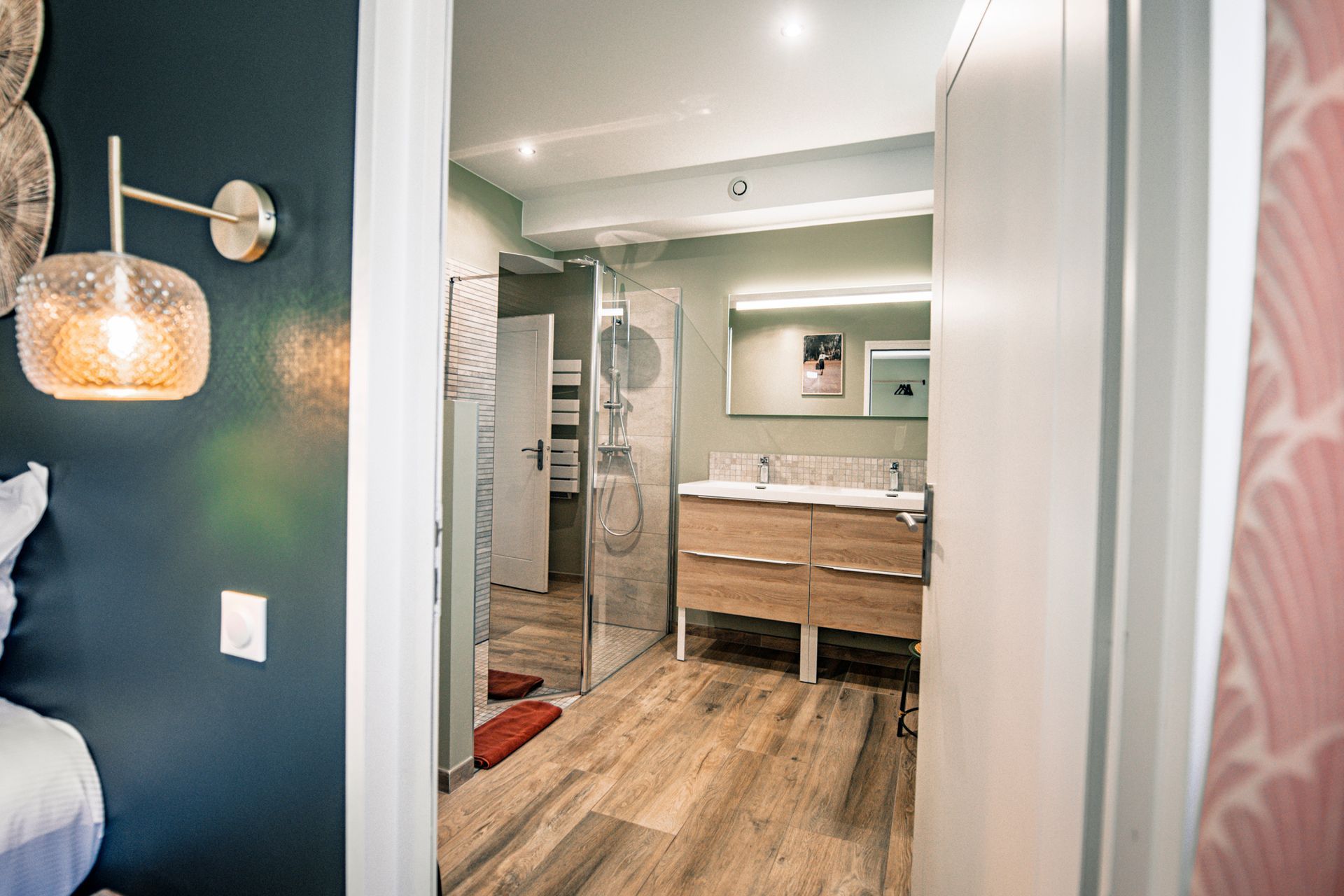 Située au rez-de-chaussée , cette chambre dispose de tout le confort nécessaire avec une salle de bain privative, comprenant une douche et des WC privatifs .
