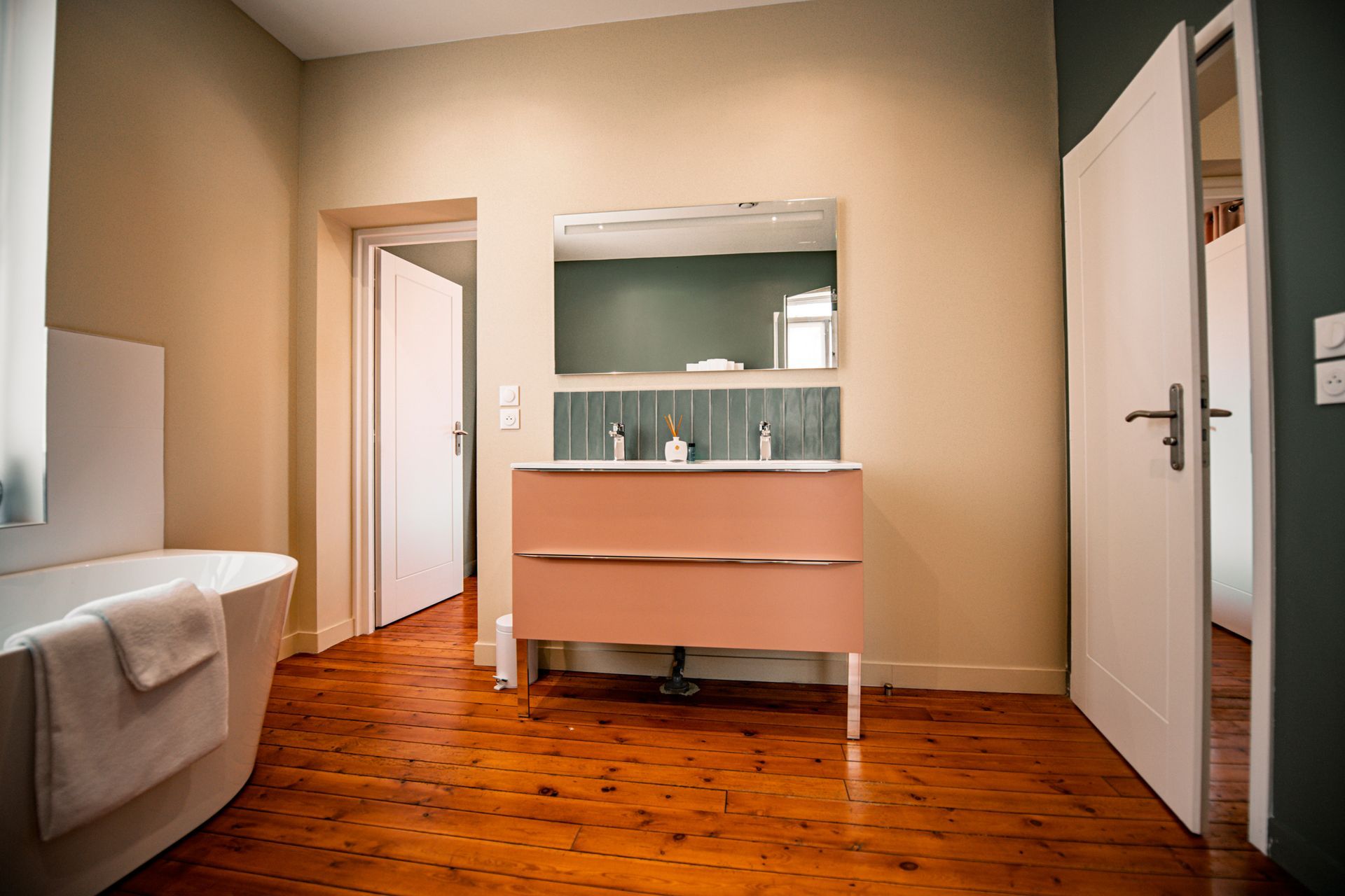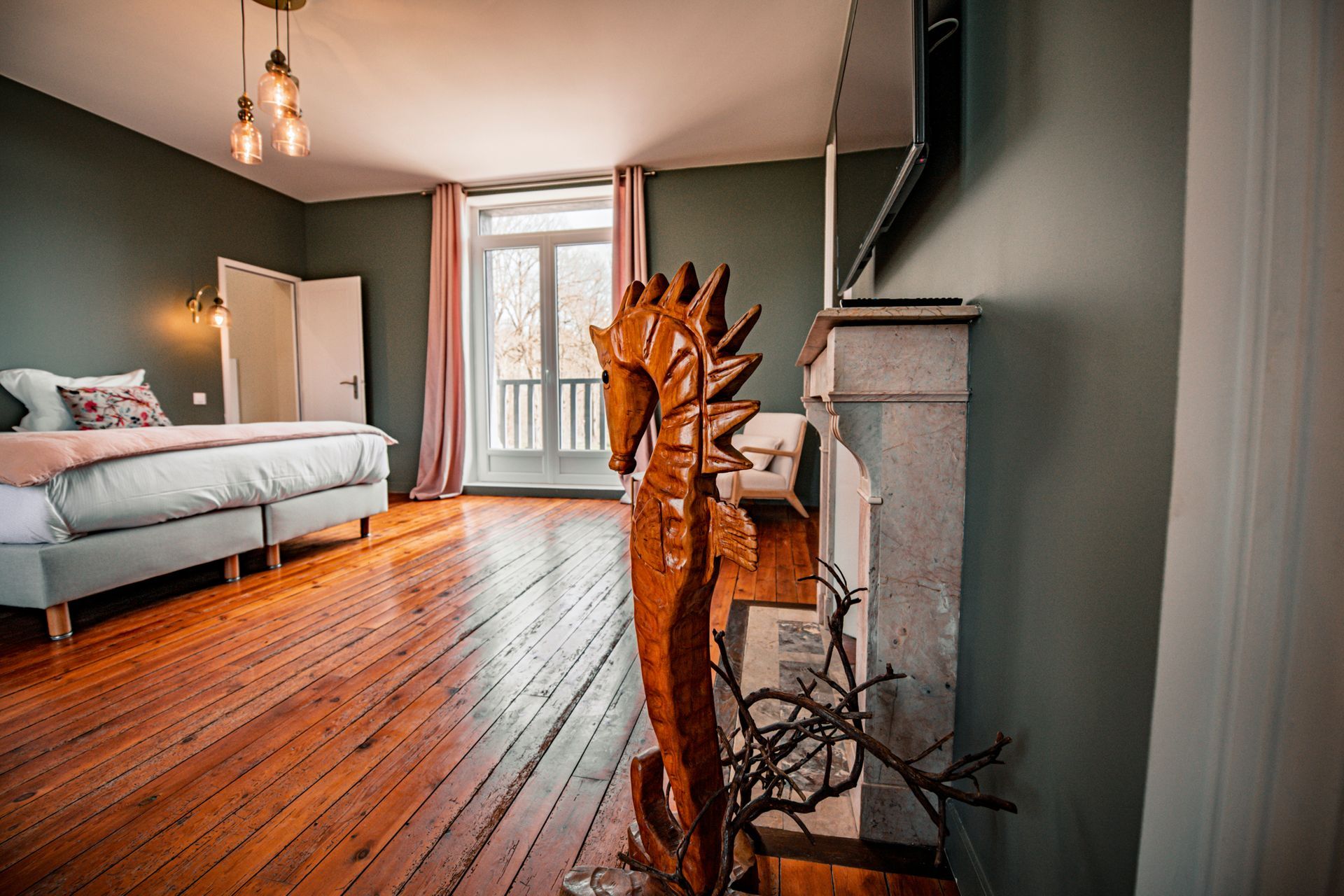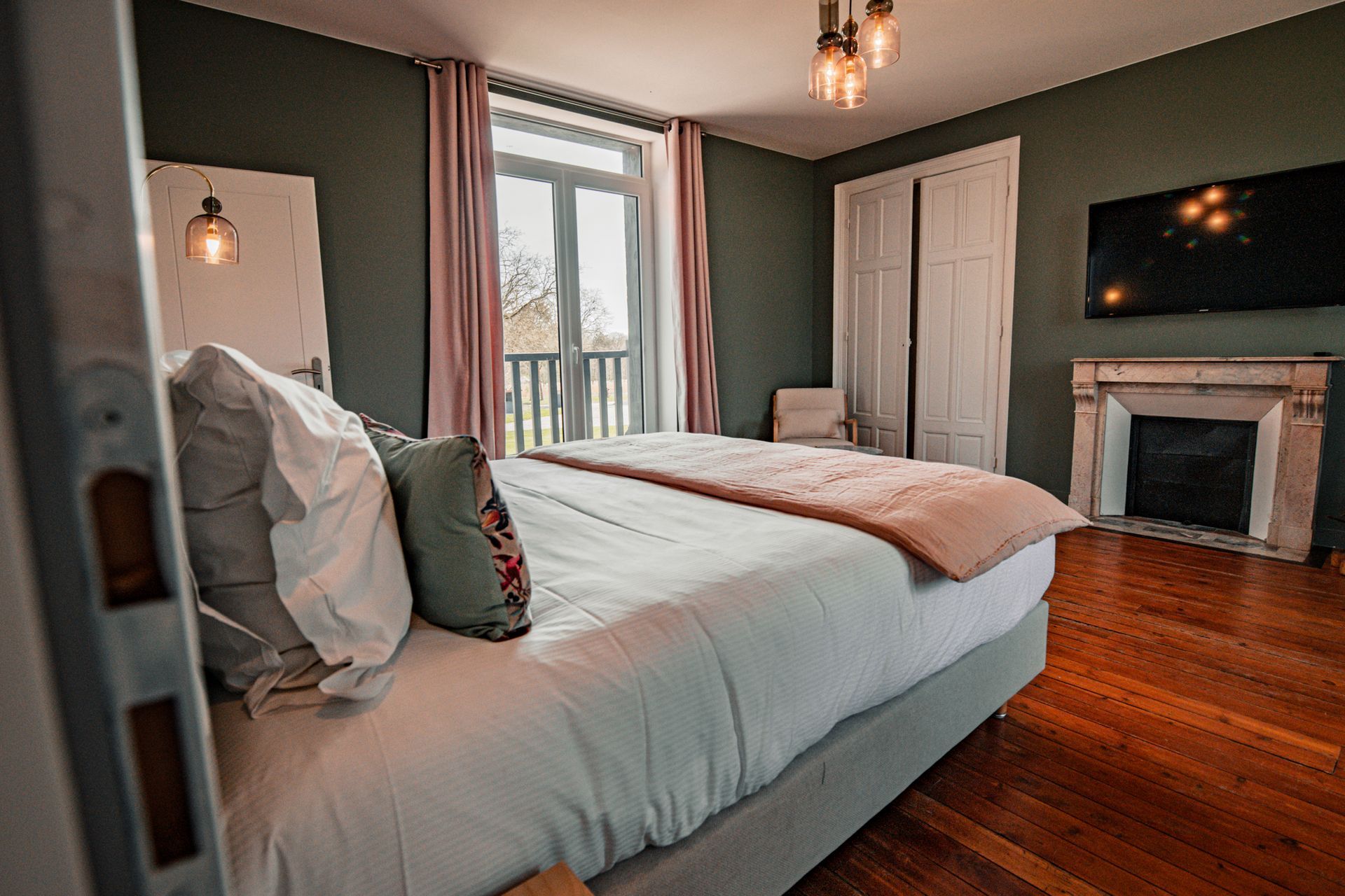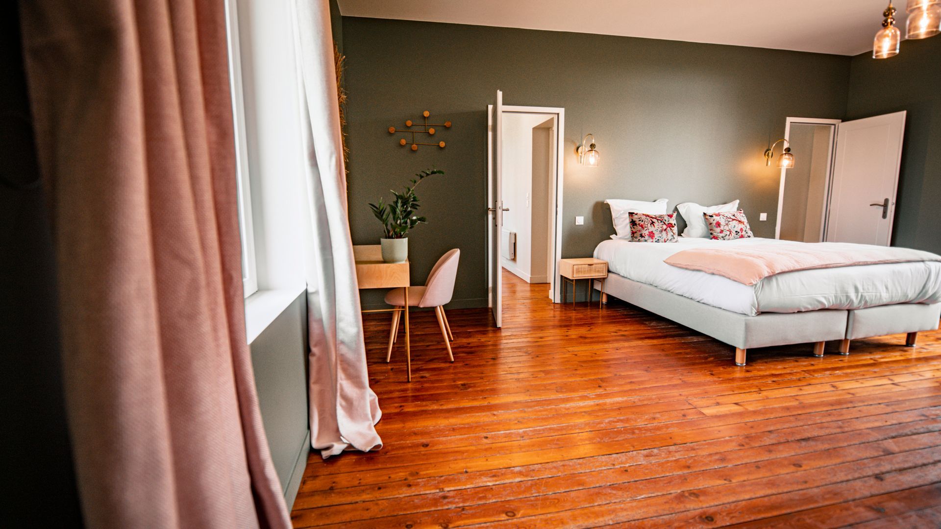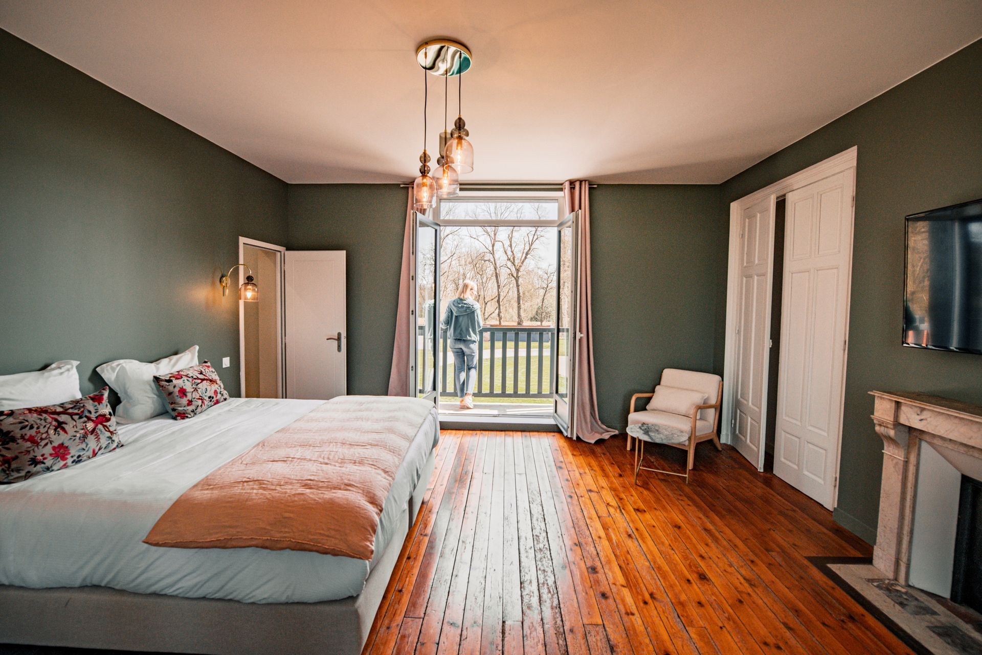 Au cœur du Domaine du Cambos, Le Refuge des Louves est une invitation à l'évasion et à la sérénité. Nichée sous la frondaison des arbres, cette chambre dévoile une palette délicate de rose tendre et de vert sauge, créant une atmosphère douce et apaisante.