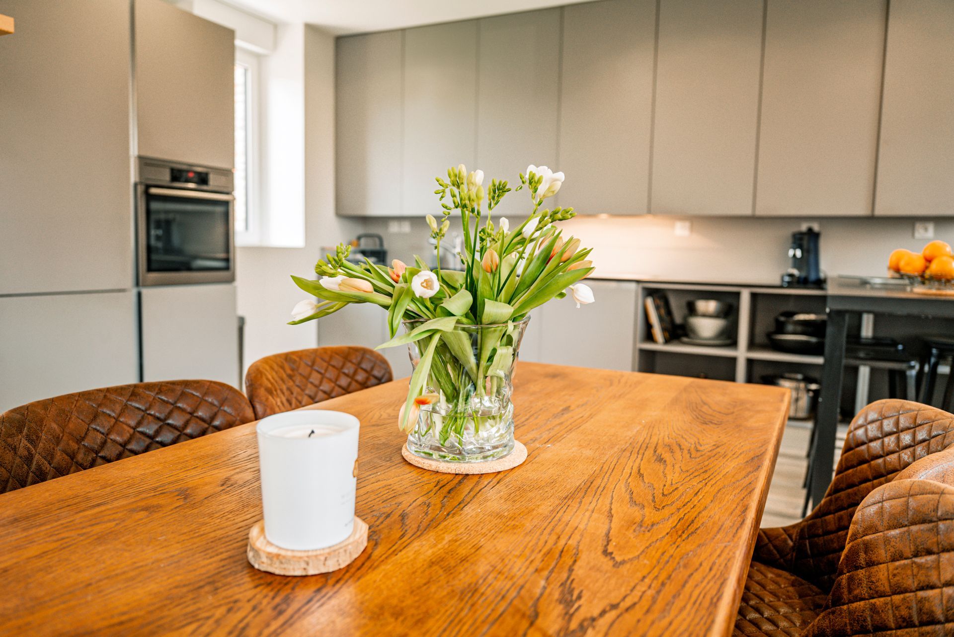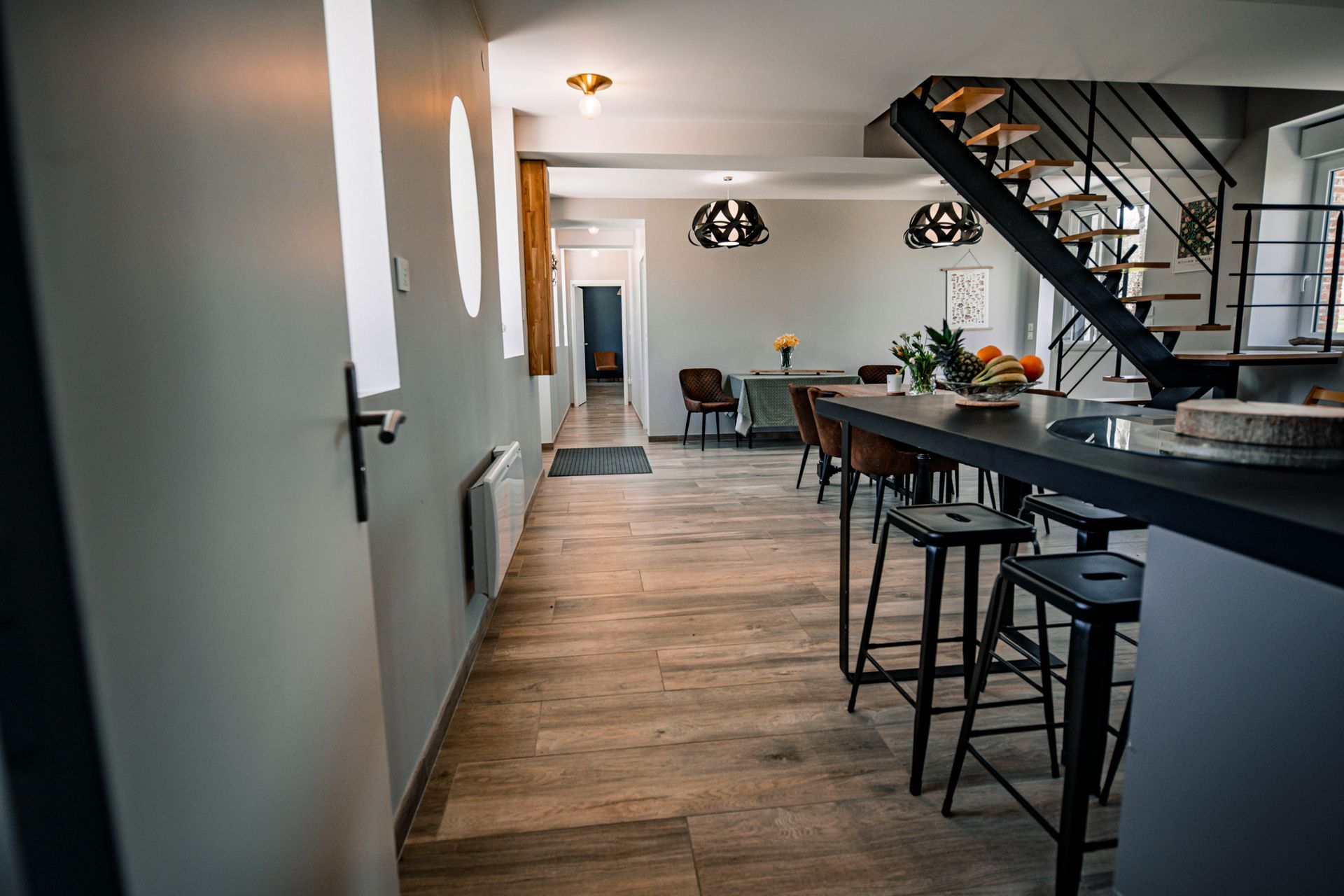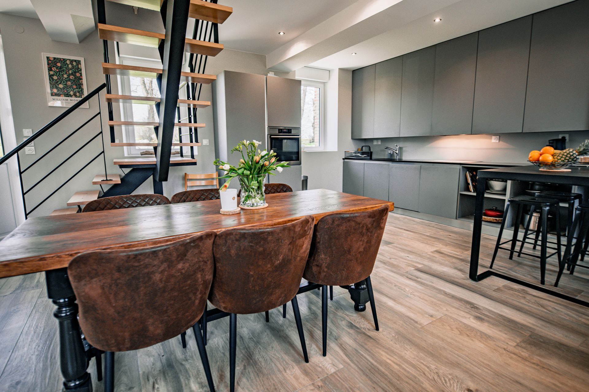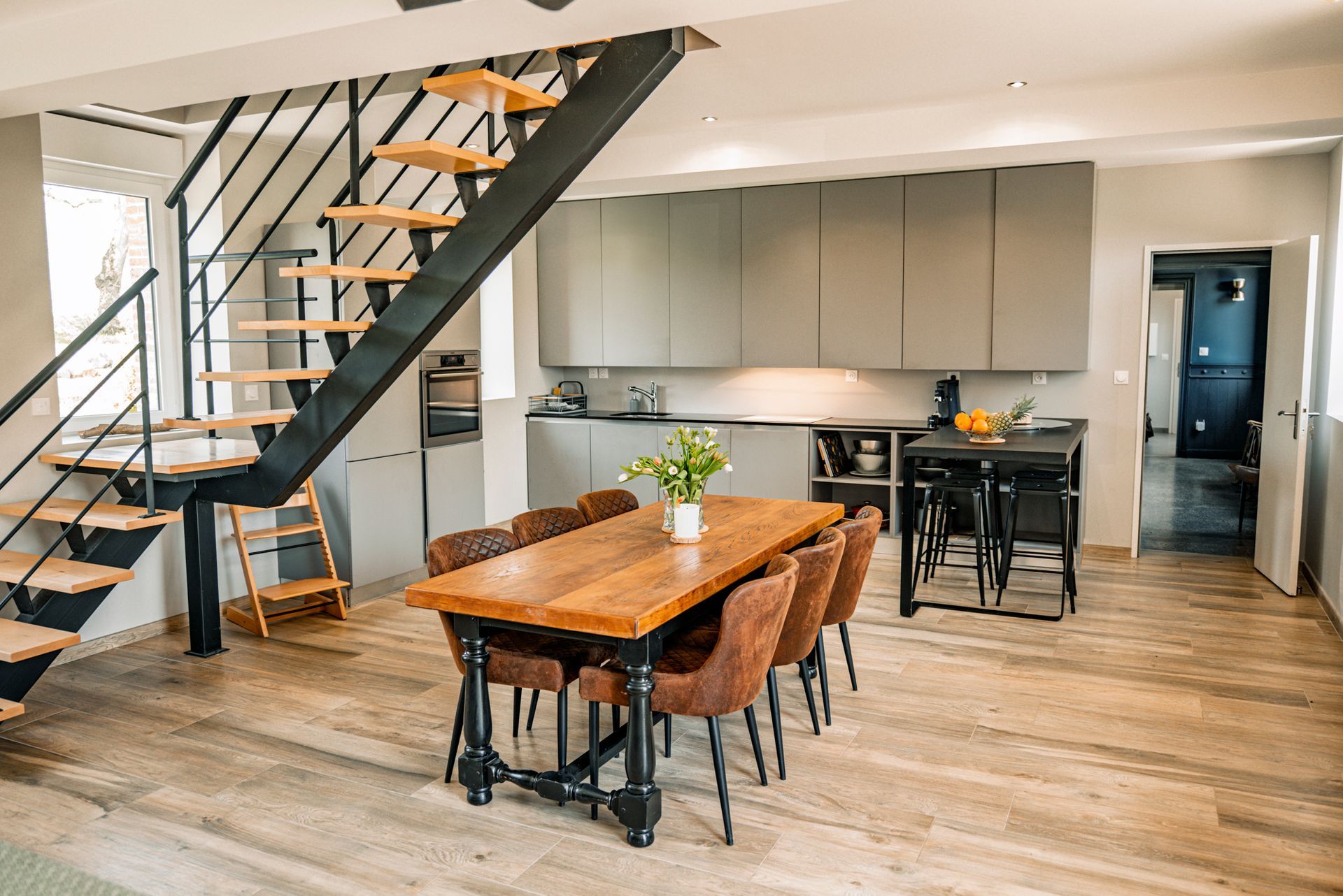 Un espace chaleureux, ouvert sur la pièce de vie, où chaque repas devient une occasion de créer de beaux souvenirs, dans une ambiance simple et authentique.
