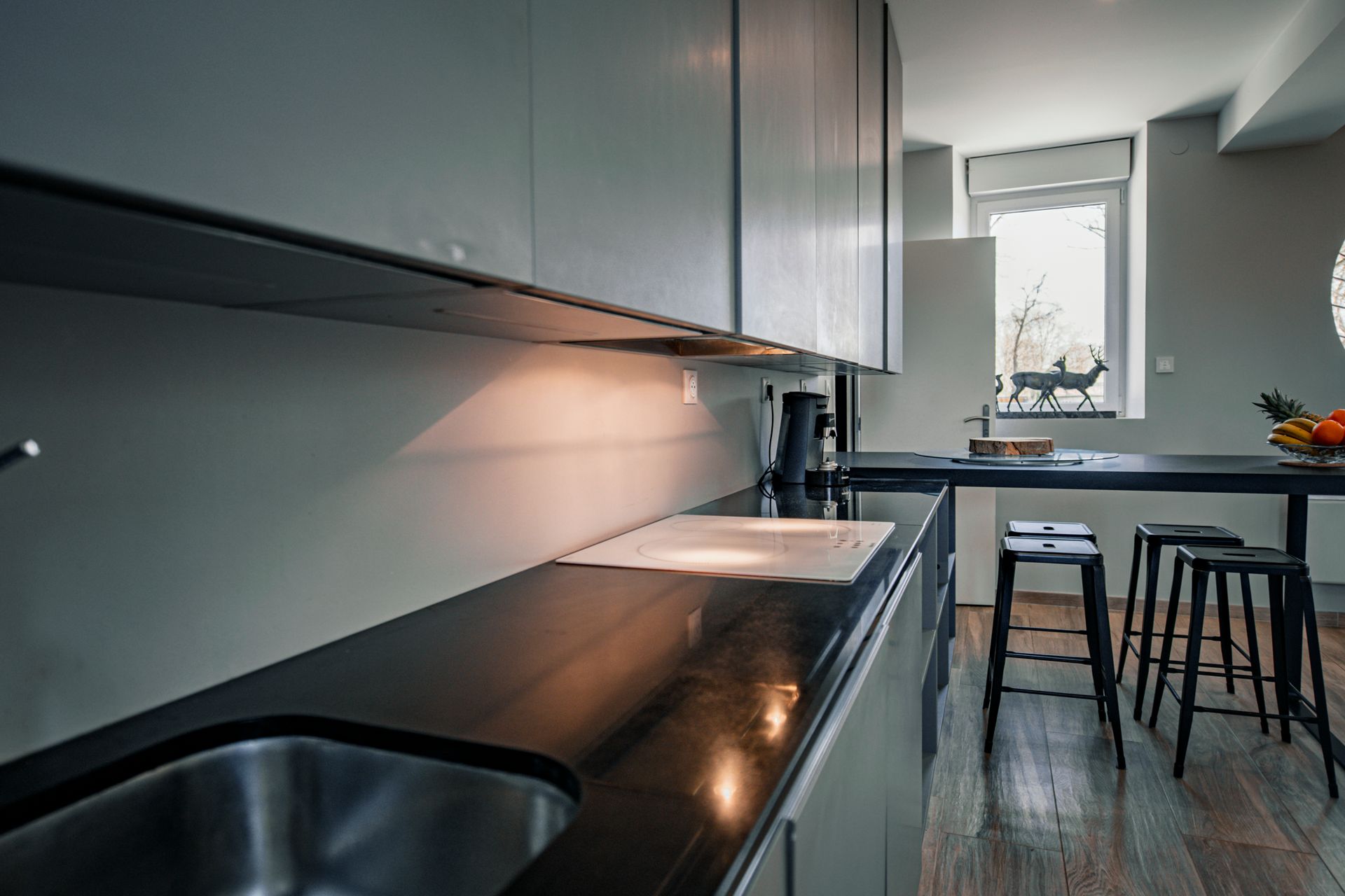 Les matériaux choisis et les finitions soignées viennent souligner le raffinement discret de cet espace pensé pour durer.